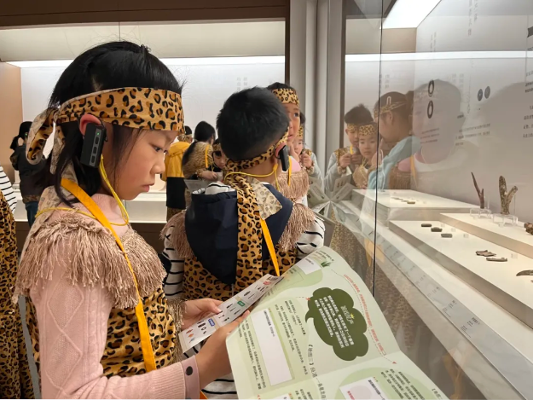 12月6日下午,苏州湾博物馆内,一场跨越六千年的生存挑战赛精彩上演。“我从远古来”主题剧本游再次开放,吸引了众多小朋友化身探险家,亲身体验史前先民的生活智慧与文化魅力。我从远古来原始人的生存第一课活动伊始,每位小参与者都扮演意外穿越到史前时代的现代探险家。眼前是广阔的青草滩,耳边是陌生的远古风声,他们的首要任务就是:在原始环境中努力生存下去。孩子们先学习了不同的石器的使用方法,了解远古人类获取食物的方式,上了一堂生动的“生存第一课”。我从远古来史前生活挑战随后,大家动手体验了一系列史前生活挑战:尝试用木纺轮将羊毛捻成毛线,认识各种陶器并亲手设计陶器纹样,还走进先民日常生活,学习辨认动物骨骼,并用锡纸复现原始的狩猎场景。通过边听讲解、边动手挑战的方式,孩子们不仅积累了“资产值、魅力值和权力值”,也在过程中感受到先民的审美与创造力。我从远古来史前社会的精神信仰活动的高潮围绕史前社会的结构与精神信仰展开。孩子们通过模拟祭祀、解密玉器等环节,体会到权力凝聚的过程以及文化认同的重要性。剧本游我从远